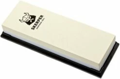 This Shapton Pro Stone grain 30.000, murasaki is a very special sharpening stone with a grain size of 30.000. It’s so fine that it almost feels silky soft. As with all Shapton Pro Stones, you can sharpen very quickly and evenly with this 30.000 stone. The sharpening stone is really made for the very last step in the sharpening process, so that even the last millimetre of the edge is absolutely razor-sharp. It’s ideal for sharpening straight razor blades, for instance. Before you switch to this stone, you’ll want to use the 12.000 stone if you’re sharpening harder steels. For softer steels, the 8.000 stone is more suitable. If you use this 30.000 stone correctly after that, the edge will be sharper than ever before.