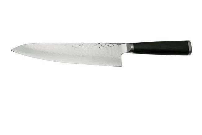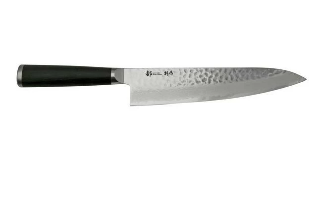 The Shizu Hamono Shikisai Miyako Bessaku gyuto 21 cm is a versatile Japanese kitchen knife. In Japanese, Gyuto means ‘cow sword’. Sounds gruesome, but it simply means that this knife was originally designed to prepare meat. Today, the gyuto knife is considered an all-round chef’s knife for cutting meat, fish and vegetables.