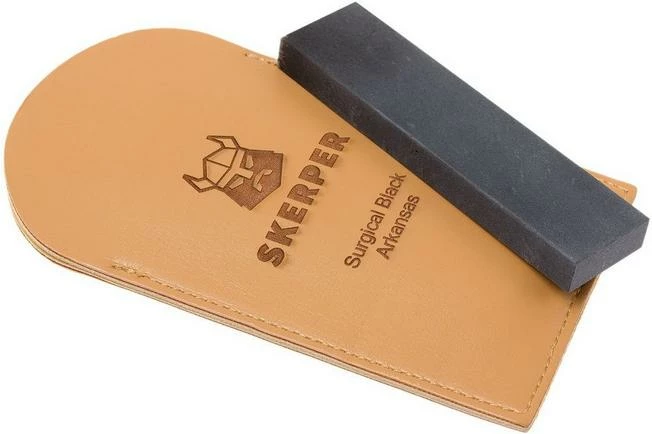 The Skerper Surgical Black Arkansas pocket stone is the second finest stone in the collection, equal to an American 4000-6000 grit stone. As its name suggests it will create a very finely polished edge, like a scalpel. This pocket sized stone is the perfect companion to take to the great outdoors. Available in 5 different grits, for a stone progression from rough, all the way to a very finely polished edge. Each stone comes in its own sleeve for storage and transport.