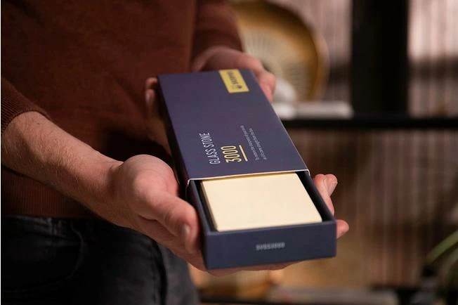 With this Skerper Glass Stone 3000 grit sharpening stone you can quickly sharpen your knives. This sharpening stone works according to the Splash & Go principle. Simply put: add a splash of water and you are good to go. The sharpening stone is made from top-quality aluminium oxide to make sure it will last a lifetime, is easy to use and will provide you with the best results.