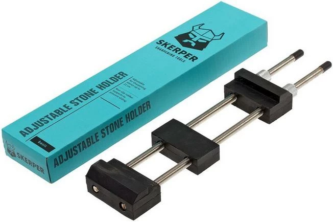 The Skerper sharpening stone holder SVSA001 is essential when sharpening on whetstones. It can easily be adjusted with the screws so you can place stones up to 22 cm’s in the holder. The stone holder won’t go anywhere during sharpening because of the sublime rubber anti-slip support.