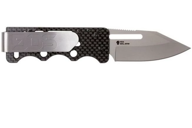 The SOG Ultra C-Ti is a remarkably lightweight pocket knife. With a weight of only 35 grams and a slim profile, you can easily carry this knife with you every day. It is made in Seki, Japan, out of VG10 steel and carbon fibre. VG10 is a popular Japanese steel that is corrosion-resistant and retains its sharpness well. The low weight is primarily because of the handle. It’s made from carbon fibre, so it weighs next to nothing.