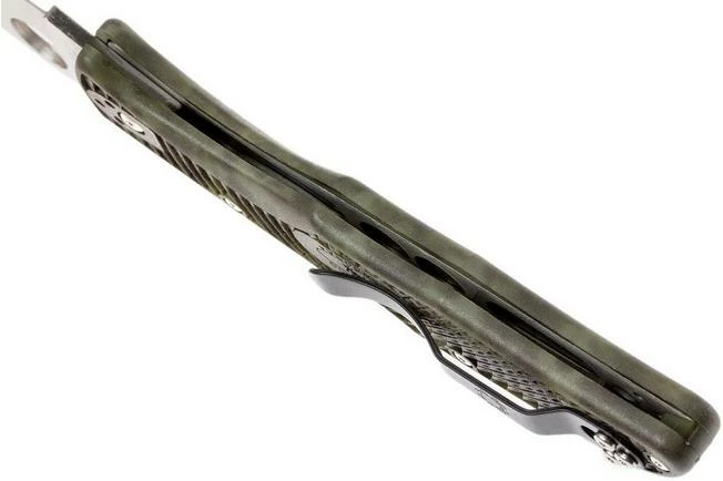 The Spyderco Endura 4 Zome is the perfect pocket knife for anyone who loves Spyderco knives but feels the Delica is a little too small. The Endura 4 has a blade length of 9.6 cm. A difference of 2.3 cm when compared to the Delica might not seem that much, but this knife feels a lot larger. Because of its size it is also easy to carry with you. Because of the FRN (fibre glass-reinforced nylon) the knife is very light-weight. The solidity is increased by the steel liners. These, however, are milled out to make sure the liners don’t make the knife too heavy.