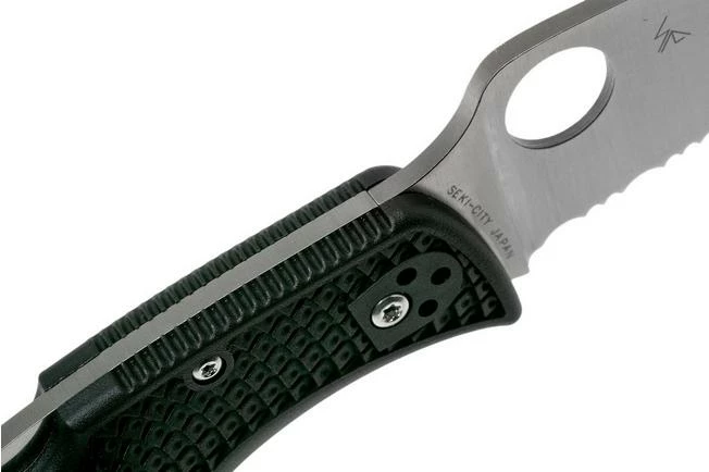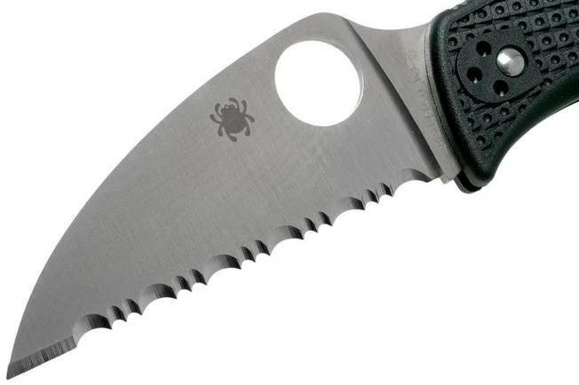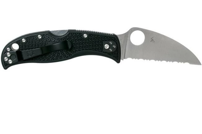 The Spyderco Rockjumper C254SBK serrated is a cool pocket knife for EDC use. The straight serrated edge of this version is perfect when cutting through rugged materials such as rope or cardboard. But also the pointed tip that emerges as a result is great for the more detailed tasks. Think, for instance, of cutting large pieces of cardboard on a flat surface. That is when you notice that the tip will come in handy!