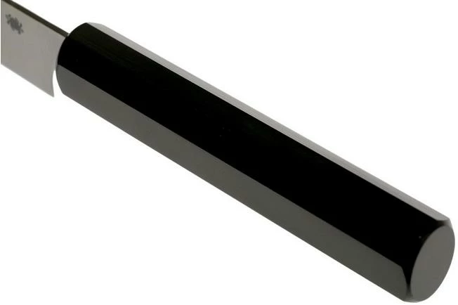 The Spyderco Wakiita Petty knife from the Murray Carter Collection is the smallest knife in this collection. From the French word ‘petit’ which means ‘small’, this Petty knife is the equivalent of a Western peeling knife. Perfect when peeling and cutting fruit, vegetables and making detailed garnishes for that finishing touch.