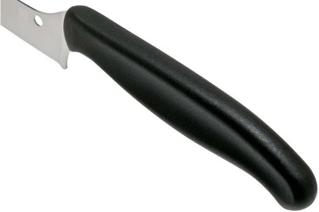 The Spyderco Z-Cut K13PBK utility knife is, because of its blunt tip, a safe and versatile addition to your kitchen and ideal for cutting, for instance, garlic or onions. Because the edge is curved and because of the raised handle, you benefit more from the lever effect, which results in better cutting results! All in all a remarkably designed, utility knife that can be used for almost every task in the kitchen!