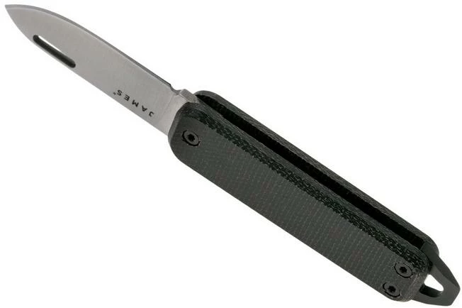 The James Brand Elko is a keychain pocket knife with a sleek design. The Elko clearly has the minimalist design we have seen on many The James Brand knives. The handle is made from sleek, styled micarta. A strong composite material made from canvas and synthetic resin. The great thing about micarta is that it will change colour in time. Grease from your hands will ensure that it will look darker. As such each knife will be unique! The blade has an interesting droppoint-like shape with an open nail-nick.