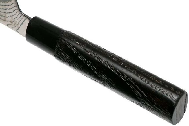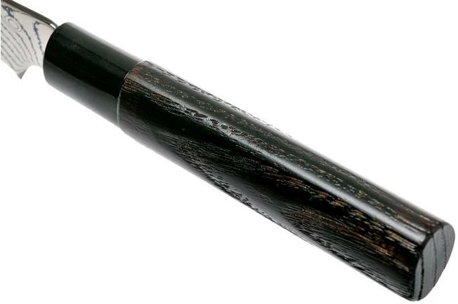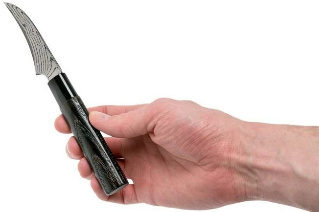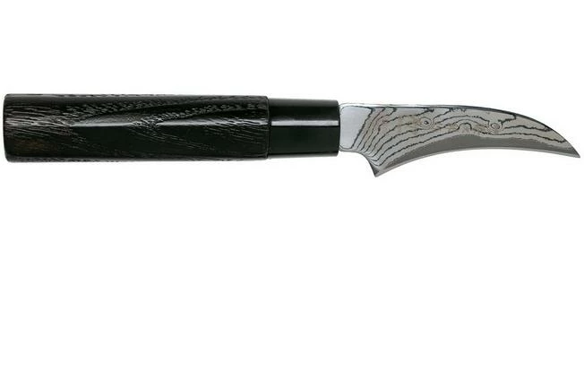 The Tojiro Shippu Black damascus turning knife 7 cm is the definition of less is more. The blade is curved which turns peeling or cutting potatoes or apples an amazing experience. The blade is 7 cm long and therefore perfect for the smaller cutting and peeling tasks in the kitchen.
