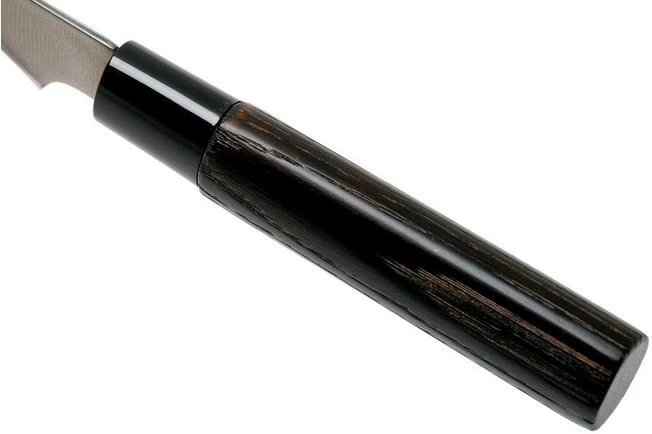 This Tojiro Zen Black turning knife will always come in handy. You use it to shape your ingredients. From turning a courgette to removing the tips of carrots. The curved shape of the blade also makes it the perfect knife for peeling work. With a good turning knife you can work a lot faster!