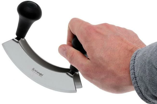 The Triangle herb chopper helps you chops your herbs, garlic and onions really fine. It has two moon-shaped blades which run parallel to each other. The curved blade helps it to roll on your chopping board easily. The blades are made of stainless steel and are sharpened by hand. The advantage of a chopper with two blades is that the speed is dramatically increased. It also helps to cut much finer compared to just one blade.