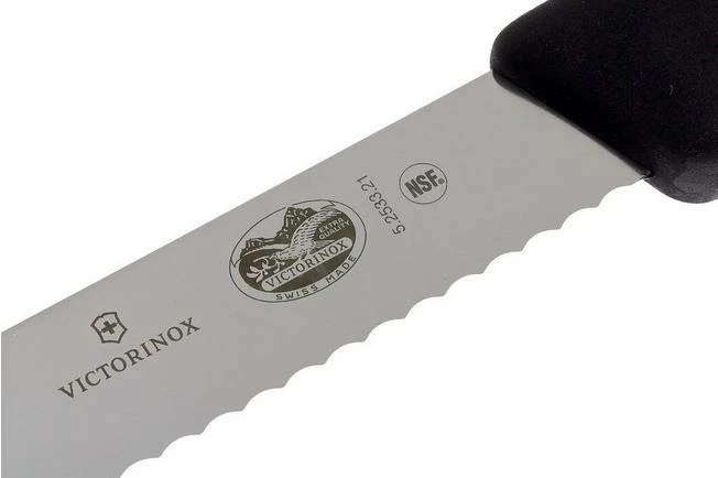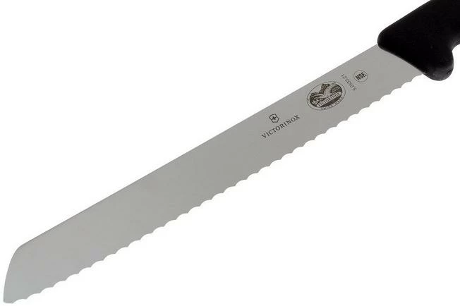 This Victorinox Fibrox bread knife, 21 cm can be used to cut all types of bread. From hard to soft crusts, from soft buns to baguettes. But did you know that a bread knife can also be used to cut pies and cake. And that a bread knife can easily cut through hard vegetables and fruit such as melons, pumpkins and celeriac? Each kitchen needs a good bread knife, and this knife is a great example.