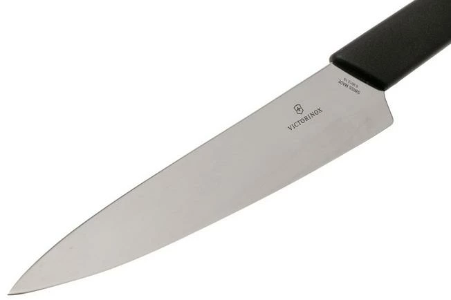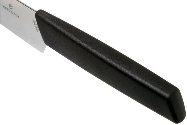 The Victorinox Swiss modern carving knife has a long blade and low 19 cm blade with a fine edge. As such it can be used to cut all types of meat. Because of the length you are able to make long, straight cutting movements. When cutting use the entire length of the blade and cut through in one go. Please note: you should only use a carving knife to cut meat. Don’t accidentally hit bones. This could cause the knife to chip.