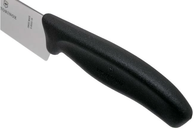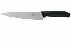 The Victorinox SwissClassic carving knife 19 cm, black is a practial all-rounder. The 19 cm long blade is large enough to cut a large chicken and practical enough to also finely chop garlic.