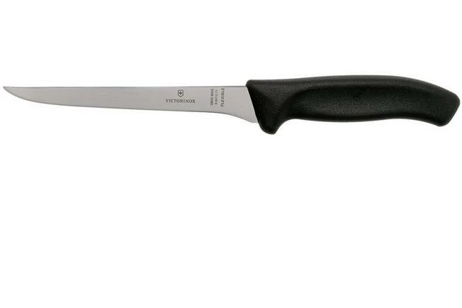 The Victorinox SwissClassic boning knife 15 cm, black is perfect when removing bones and skinning fish, meat and poultry. With its narrow blade this knife can easily remove the meat from bones. Perfect for very fine work.