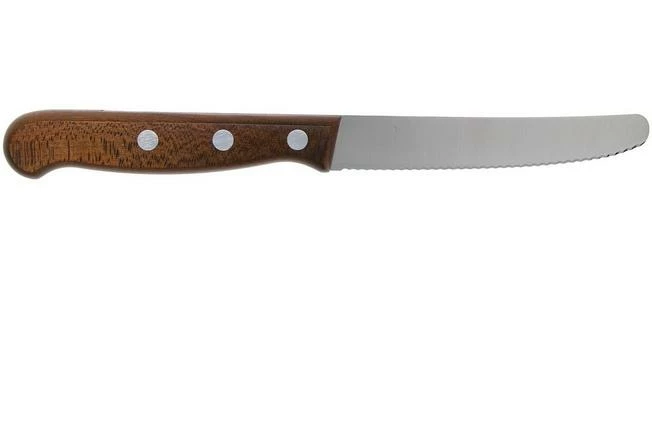 With this Victorinox Wood tomato knife you can easily cut tomatoes without crushing them. The fine serrations ‘take hold’ of the skin and will easily cut through it. Of course this knife cannot only cut through tomatoes. You can also use it to cut other vegetables.