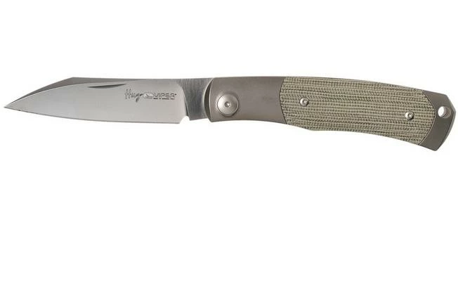 The Viper Hug is a modern gentleman’s knife, designed by knife maker and designer Sacha Thiel. The Hug was inspired by the Birdy. One of his most famous custom models. Characterizing for this model is the slim design and the pointed wharncliff-style blade. A practical shape that dates back to some of the oldest traditional gentleman’s knives. The compact size and low weight of the Viper Hug makes it perfect for both the EDC enthusiast and the modern gentleman or woman, who pays attention to every cm and gram.