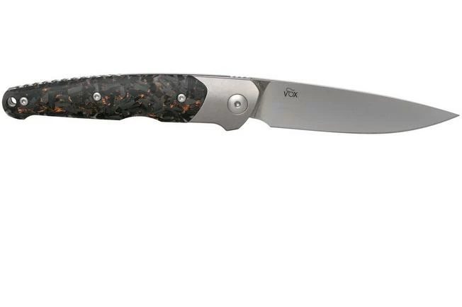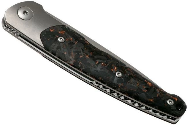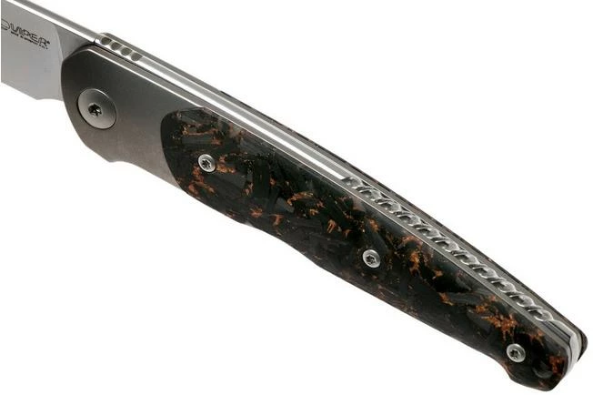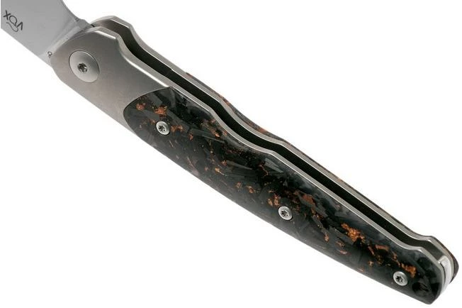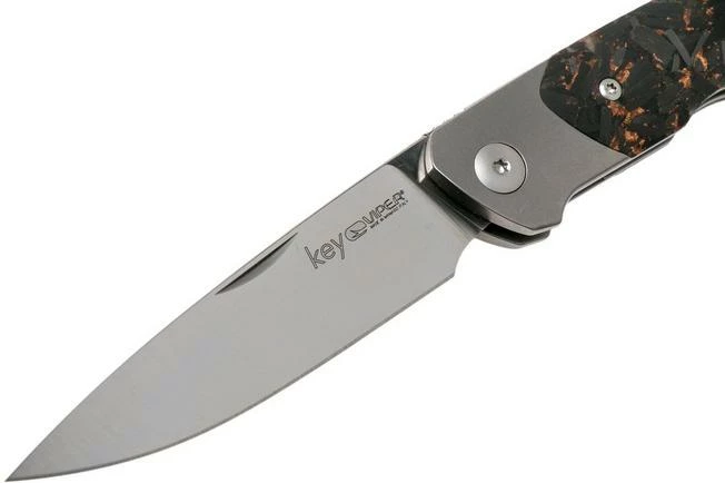 The Viper Key V5978FCSC Bolster Copper Carbon fibre pocket knife is a stylish gentleman’s knife, designed by Jesper Voxnaes. You clearly see his typical and unique design style in this remarkable gentleman’s knife. There is no clear line in sight. All forms, lines and details are attuned to each other, creating a harmonious whole. The slim design is attractive and turns it into a perfect gentleman’s knife for anyone who loves to wear a fancy outfit.