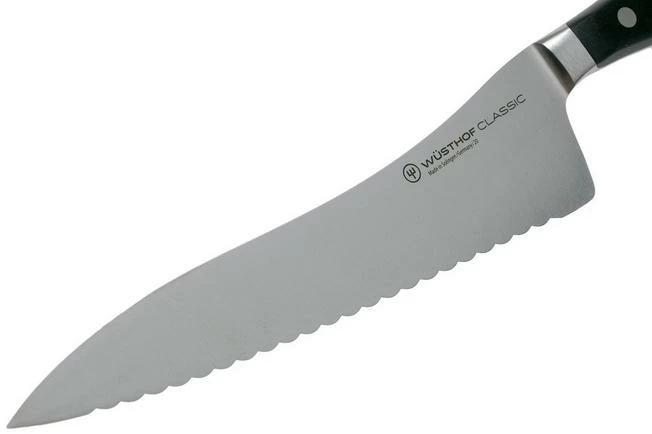 This Wüsthof Classic bread knife is enhanced with a differently shaped blade,