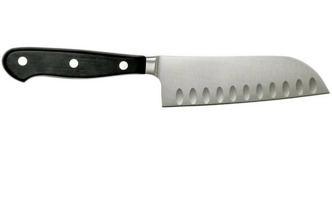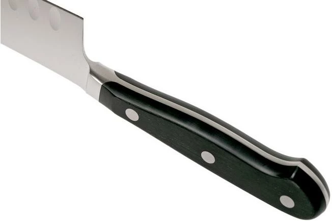 The Santuko knife from the Wüsthof Classic series is the ideal knife for the finer cutting work. This Santoku was specifically developed for preparing Sushi and Sashimi. But it can do much more than that. You can also easily cut fine vegetables or herbs. Because the blade is enhanced with dimples, small ‘air bubbles’ are created. As such food won’t stick to the blade.