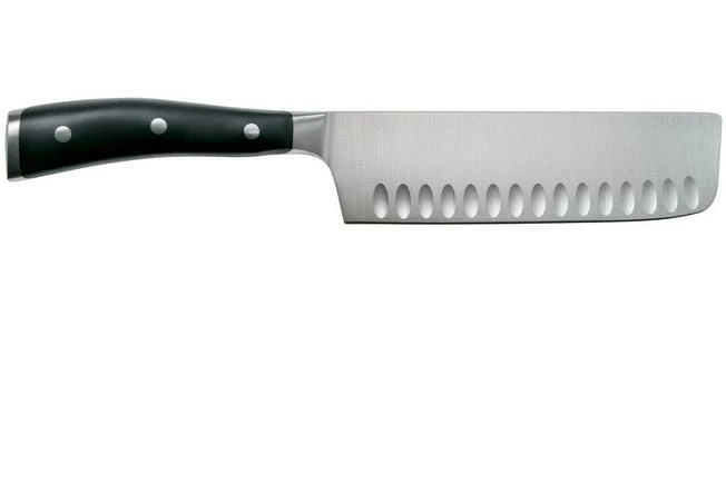 The Wüsthof Classic Ikon Nakiri 17 cm is a traditional Japanese vegetable knife with a decent German design. A Nakiri is characterized by its straight blade that enables you to use the entire cutting surface. The edge is wafer-thin and razor-sharp. With it you can finely and precisely dice an union.