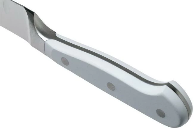 With its 23 cm blade, the Wüsthof Classic White carving knife is great when cutting large pieces of meat. You can easily slice ham or roast beef into thin, equal slices. The slightly shorter blade ensures that it is more flexible as you use it. The dimples – small dents on the edge of the knife – create small air pockets that ensure that the fish does not stick to the blade.