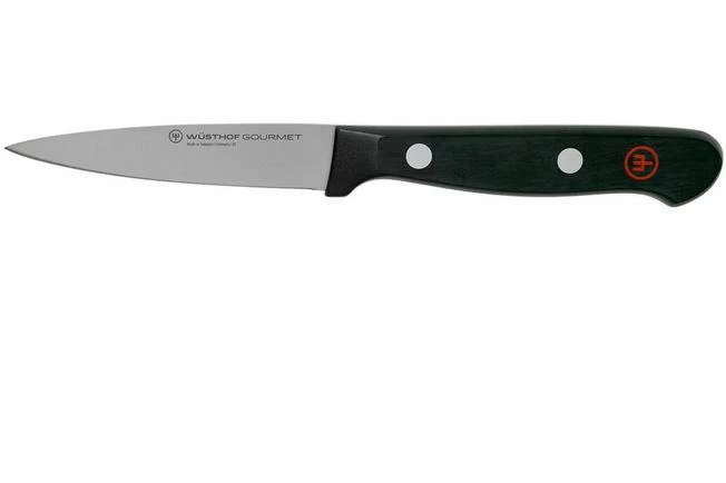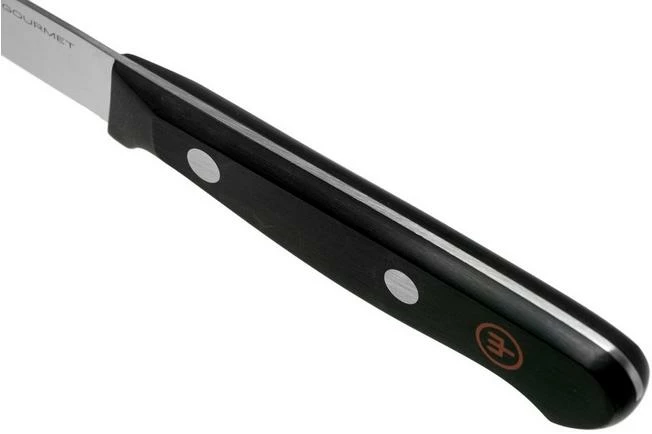 This Wüsthof Gourmet peeling knife is a small but versatile knife with a thin blade and smooth edge. This vegetable knife is made to cut onions and herbs, but is also great when chopping, cleaning and decorating fruit and vegetables.