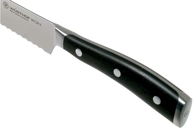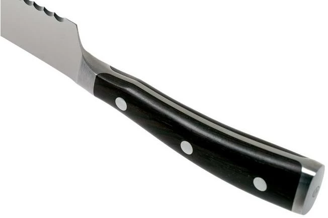 The Wüsthof Ikon bread knife, 20 cm is a bread knife with a luxurious look and feel. Perfect when cutting all types of bread. From hard to soft crusts, from soft buns to baguettes. This all-round knife, however, can also cut through delicious pies or a large piece of celeriac.