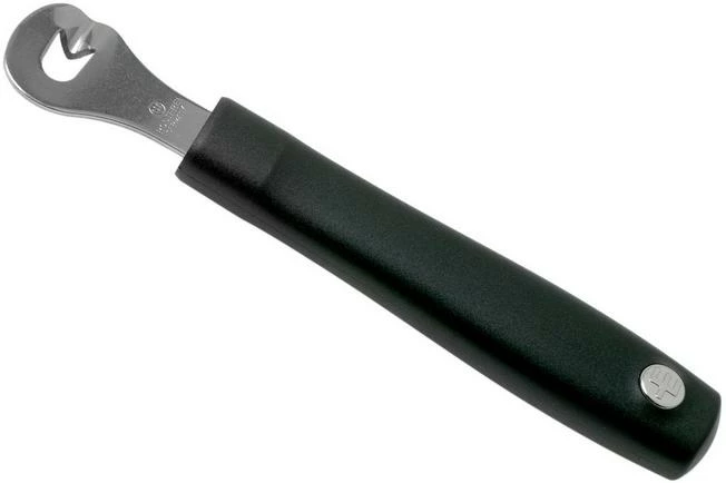 With this Wüsthof Silverpoint orange peeler you will never have to worry about peeling an orange or other citrus fruit ever again. You can also use this peeling to decorate using an orange or any other fruit. It is comprised of a handle and a metal head with an ‘eye’ you use to scrape over the skin. To make this easier the edge of the ‘eye’ is razor-sharp. The shavings are often used as seasoning (sometimes dried) or as a decorative garnish.