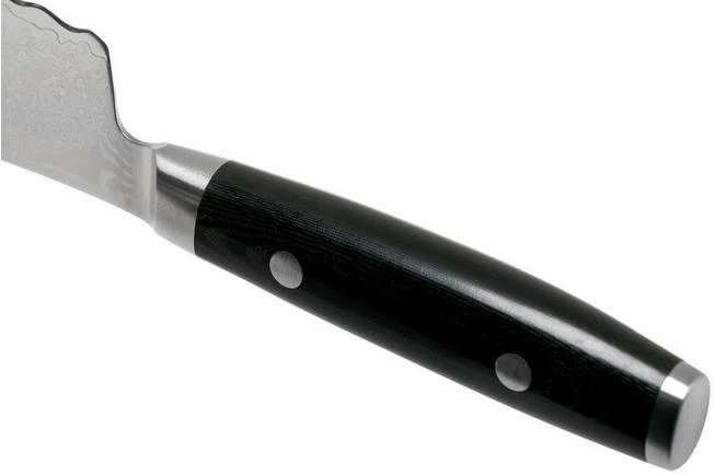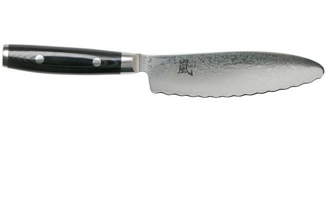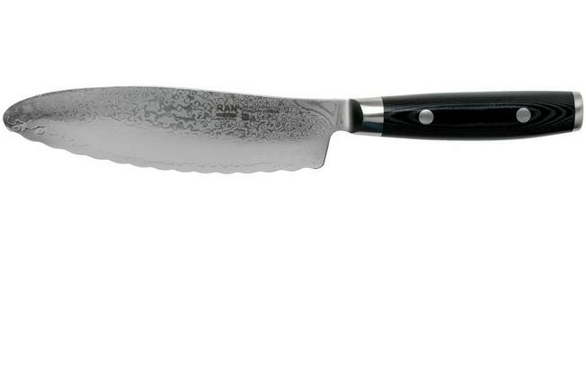 The Yaxell Ran panini knife is a Japanese bread knife with a stunning design. The remarkably-shaped blade is great when preparing sandwiches. With the serrations you can easily cut through the hard crust and with the high blade and the convex tip you can easily spread out jam or butter.