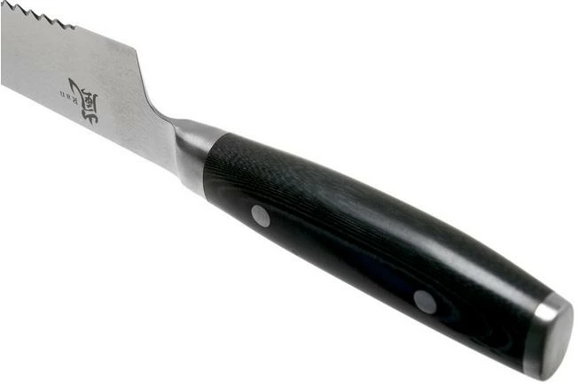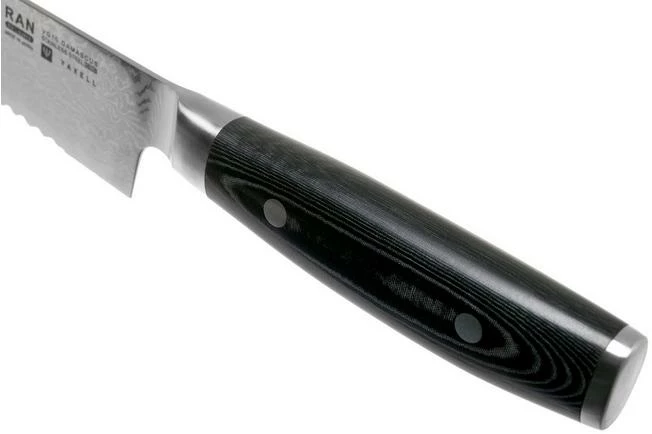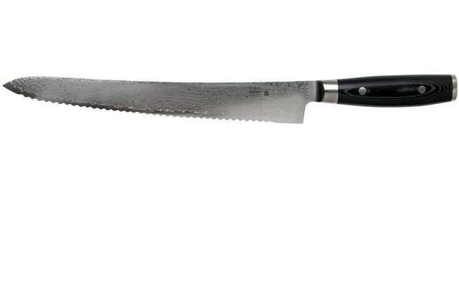 The Yaxell Ran bread knife is a large and stylish Japanese bread knife. With the 27 cm long, serrated blade you can cut all types of bread: from hard to soft crusts, from buns to baguettes. But you can use the knife for more than just bread. It is also great for cakes and pies. And what about hard vegetables and fruit like melons, pumpkins and celeriac!