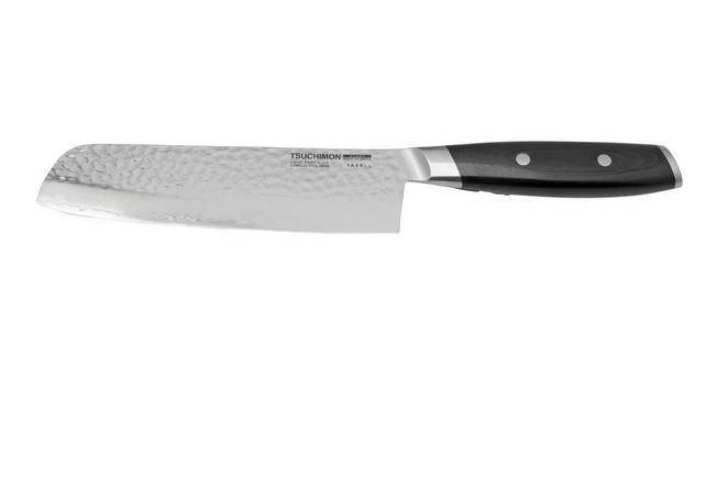 The Yaxell Tsuchimon nakiri is a traditional Japanese vegetable knife with a modern twist. The nakiri can be found in almost every Japanese kitchen. The high and square blade is great for quickly cutting vegetables, fruit and herbs. The high blade allows you to safely guide the blade along your knuckles while chopping. Without a doubt, this is the go-to knife for finely chopping carrots, cucumber, cabbage and any other types of vegetables.