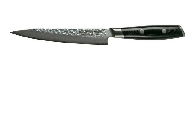 The Yaxell Tsuchimon carving knife is a small, traditional Japanese carving knife with a modern twist. The 15 cm hammered blade is perfect for small, delicate jobs. For instance, removing tendons or fat from pieces of meat.