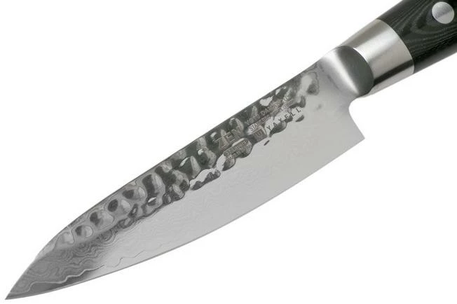 The Yaxell Zen utility knife is a practical and stylish Japanese kitchen knife. Thanks to the small 12 cm blade and its low weight this knife is great when quickly opening packaging.