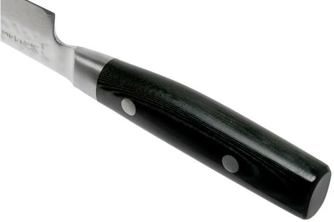 The Yaxell Zen carving knife is a stylish Japanese kitchen knife that will help you cut beautiful slices of meat. The low blade is enhanced with dimples to make sure food doesn’t stick to the blade. As such you can easily cut thin slices without tearing the meat. The sharp tip is perfect for small, delicate tasks such as removing tendons or fat.