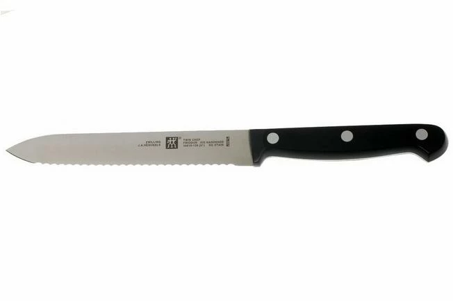 By offering the Twin Chef kitchen knives, Zwilling has given an option to chef’s with a limited budget, who want high quality Zwilling knives nonetheless. The blade of these knives is full tang: it runs entirely through the ergonomically shaped plastic handle. The blade is made of ice-hardened Friodur steel, the same as the more expensive series. This type of steel is hardened in 4 stages, where it is first heated up to 1000 ° C, and then cooled down to -70 ° C.