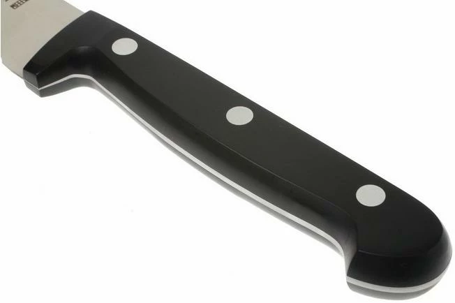 By offering the Twin Chef kitchen knives, Zwilling has given an option to chef’s with a limited budget, who want high quality Zwilling knives nonetheless. The blade of these knives is full tang: it runs entirely through the ergonomically shaped plastic handle. The blade is made of ice-hardened Friodur steel, the same as the more expensive series. This type of steel is hardened in 4 stages, where it is first heated up to 1000 ° C, and then cooled down to -70 ° C.