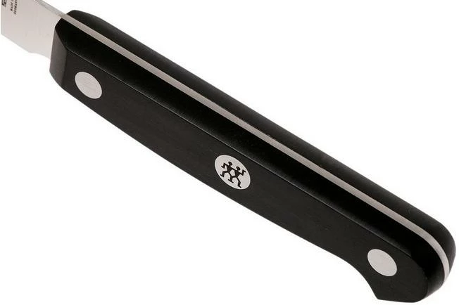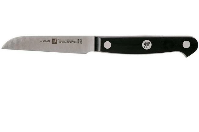 With the Zwilling Gourmet vegetable knife 7 cm you can effortlessly cut vegetables and fruit. The short 7 cm blade is perfect when cutting slices, cubes, or pieces. You can also easily use this knife to peel vegetables or remove rotten pieces. The knife is a part of the Zwilling Gourmet collection. An extensive collection of kitchen knives with a classic three-rivet design.