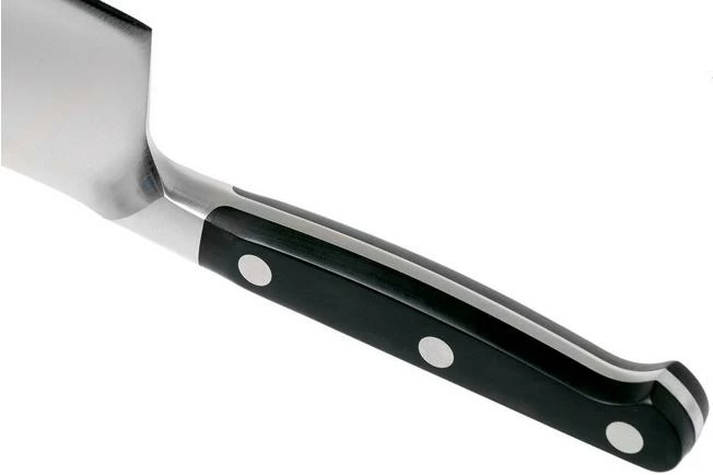 This Zwilling Pro vegetable cleaver is enhanced with a blade that is almost 12 cm. It is great when chopping, for instance, parsley, spring onions and garlic. This knife cannot be used to cut meat into pieces. For it the knife is too light-weight and small.